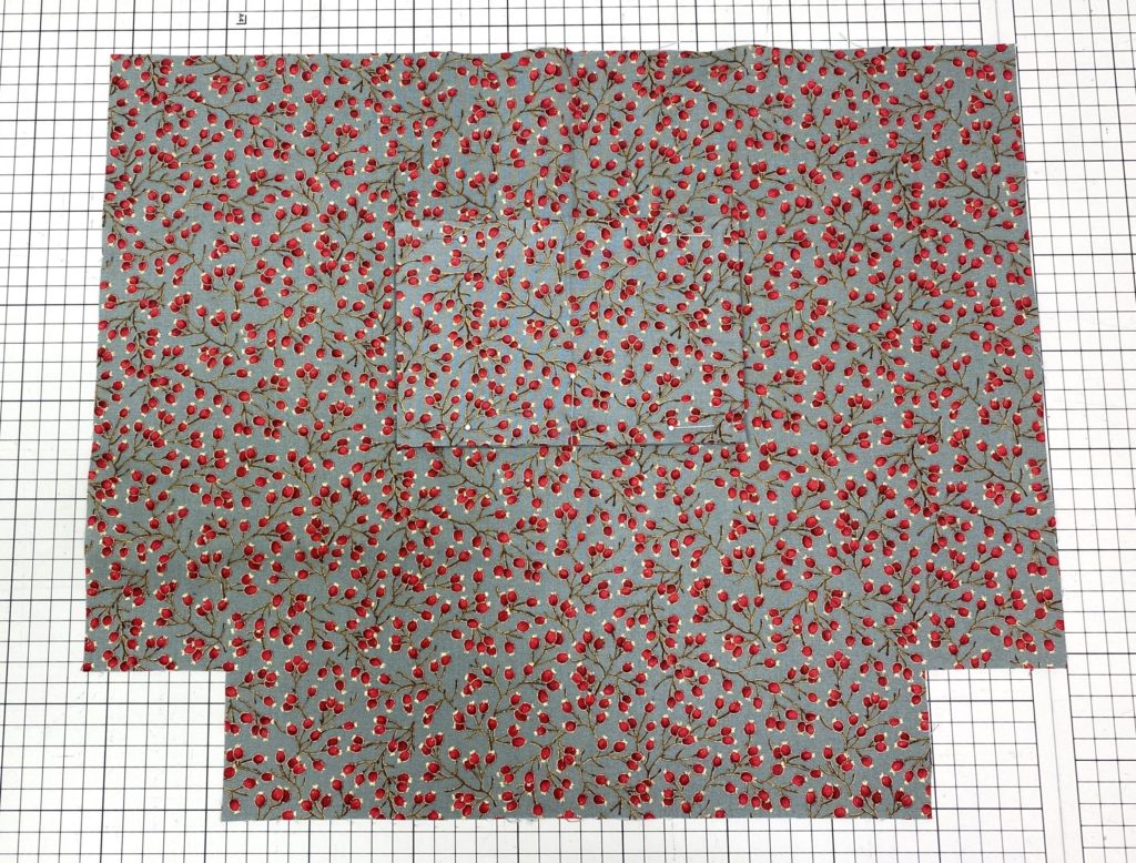 ポケット布は2つ折りにして使います。裏を上にして縦長に置き、上下をアイロンで1㎝折ります。アイロン定規を使うと簡単です。